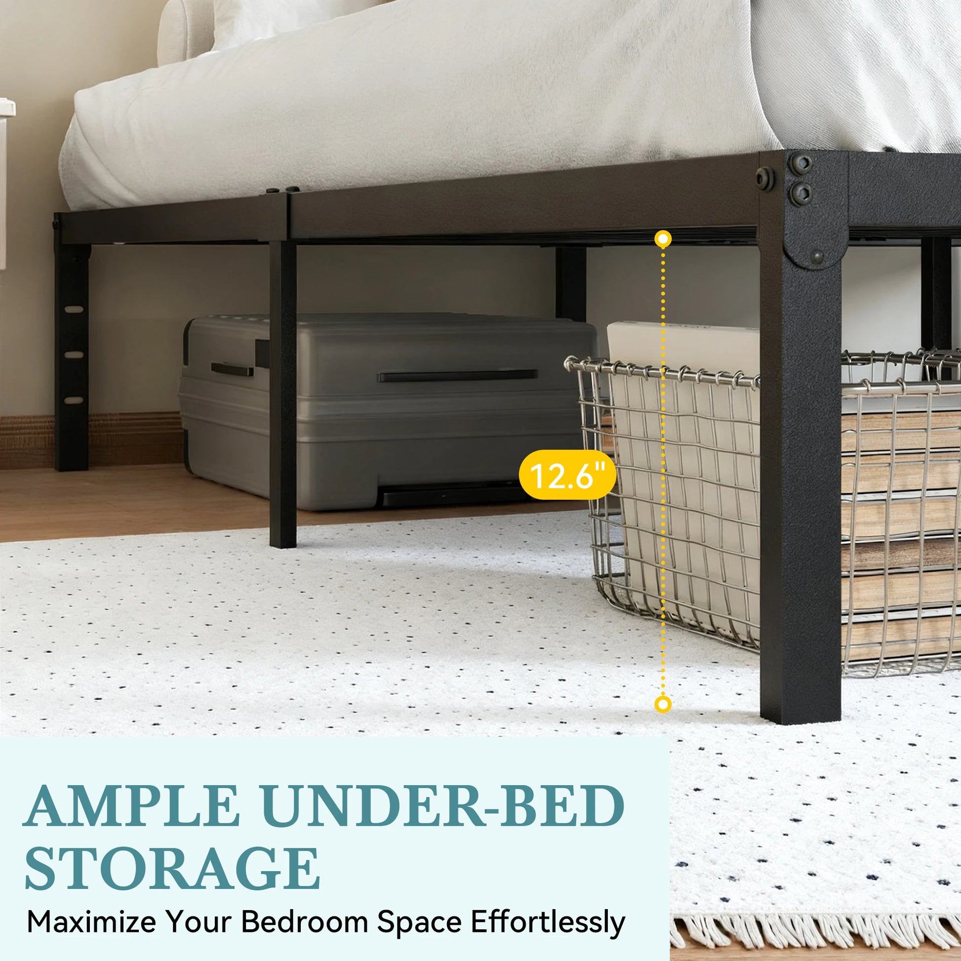 - Generous storage: 14-inch under-bed clearance makes room for bins, luggage, bedding, or seasonal items, helping keep your bedroom tidy.