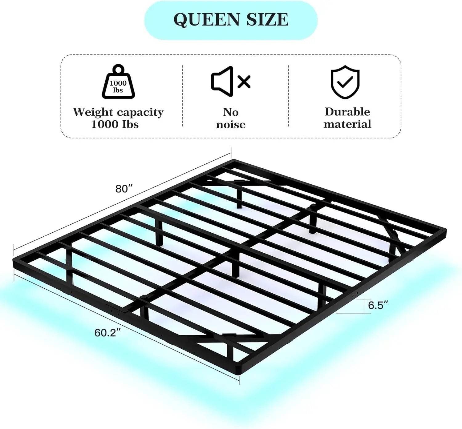 - Concealed-leg, recessed design suspends your queen-size mattress for a true floating look, while 11 sturdy slats and 9 thick legs deliver up to 1,000 lb of support—no box spring needed.